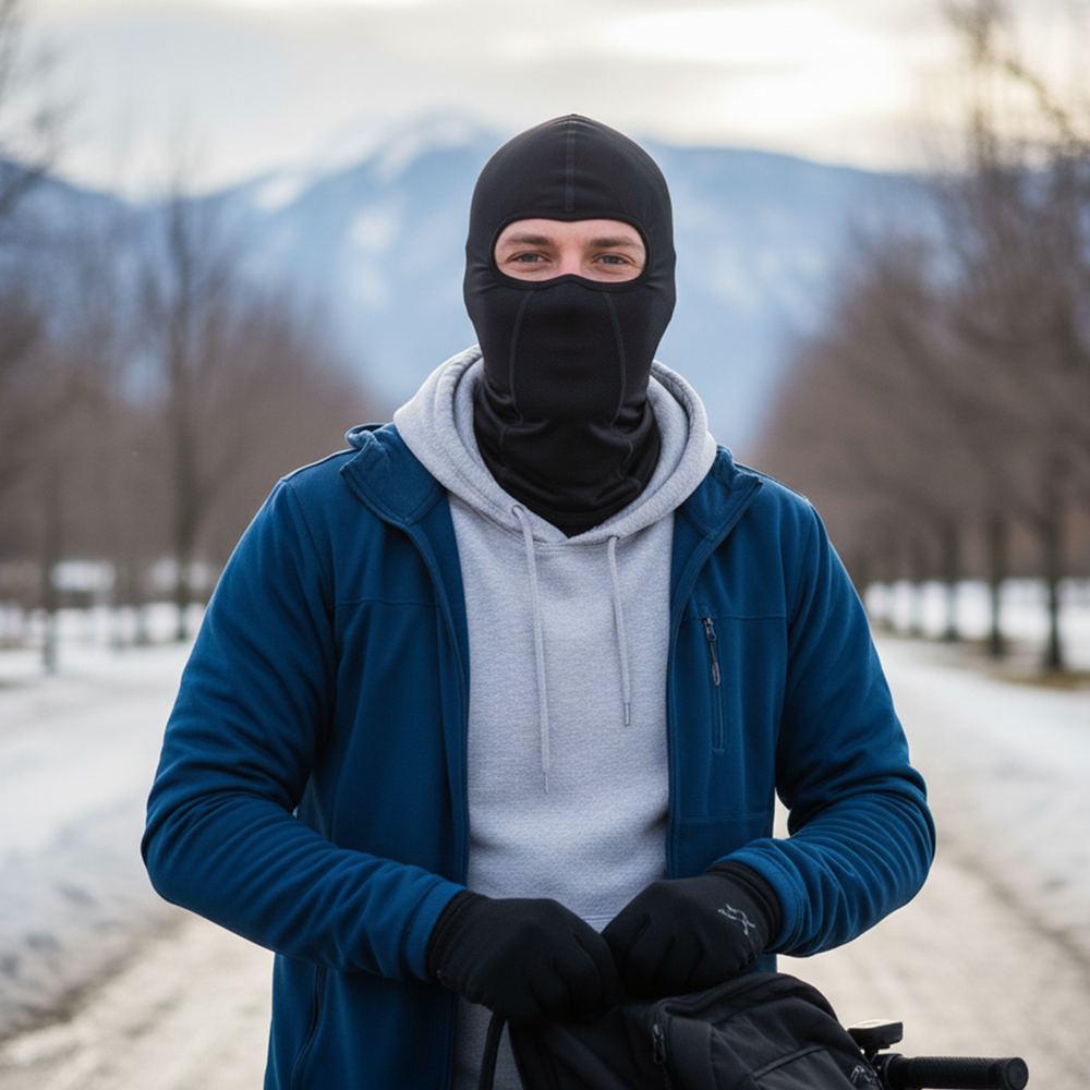 "For cold-weather cyclists and winter commuters, the Windproof Cycling Balaclava Thermal Neck & Face Cover is a must-have for warmth, breathability, and protection. Its dual-layer thermal fleece and windproof outer shell create a comfortable microclimate even in subzero temperatures. The vented nose and mouth panels help prevent fogging on glasses or goggles, and the low-profile stretch design fits perfectly under helmets. Riders appreciate its all-day comfort, moisture control, and reflective safety accents for low-light rides. It’s a reliable, durable piece of winter gear ideal for cyclists, runners, and anyone who refuses to let the cold stop their momentum."